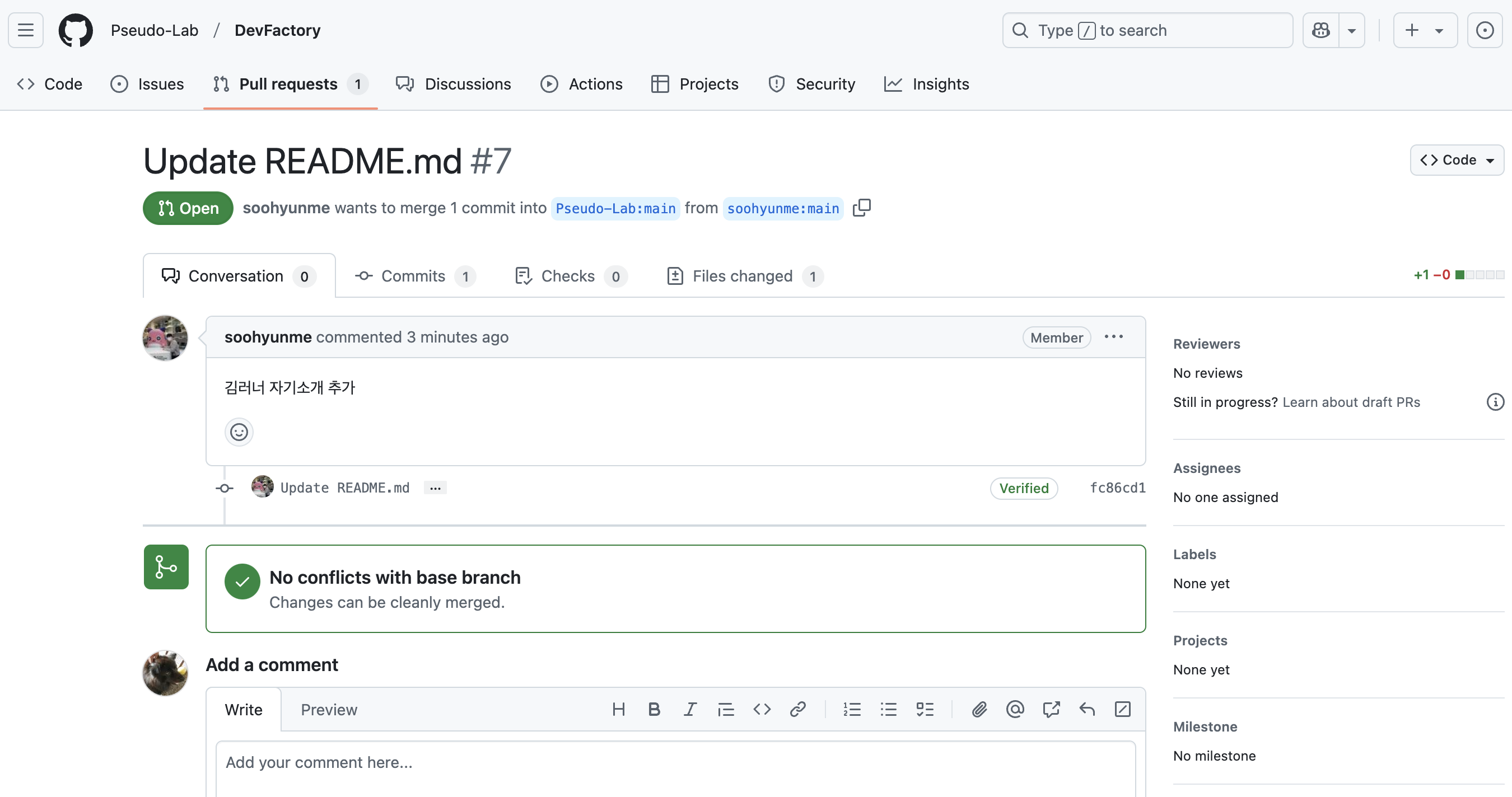 PR이 승인되면 다음 단계로 병합할 수 있습니다.