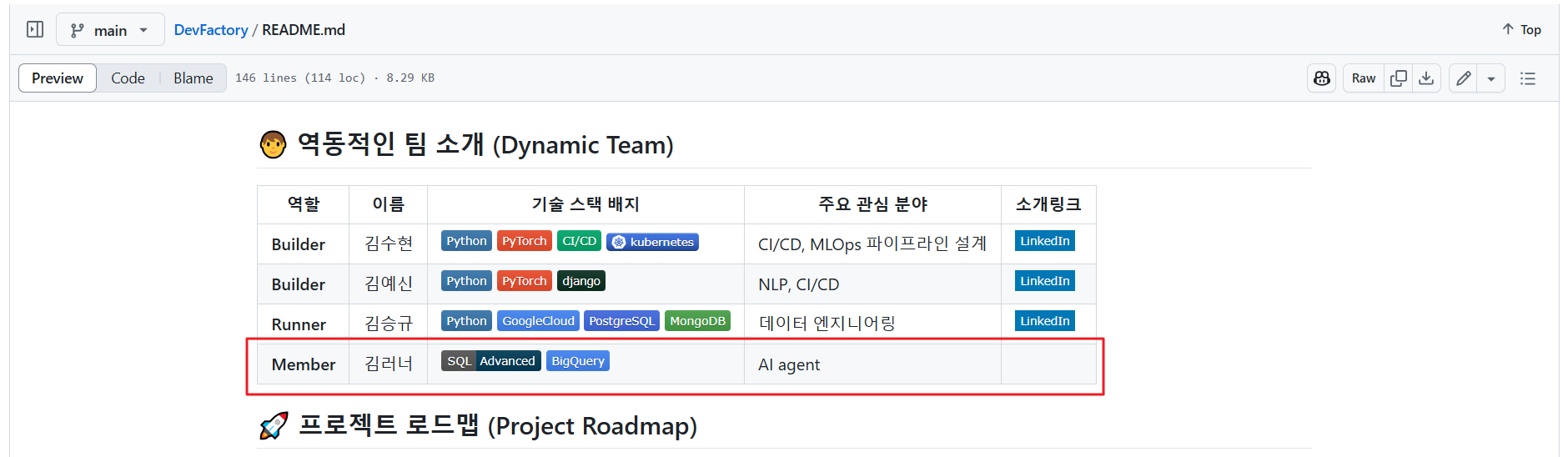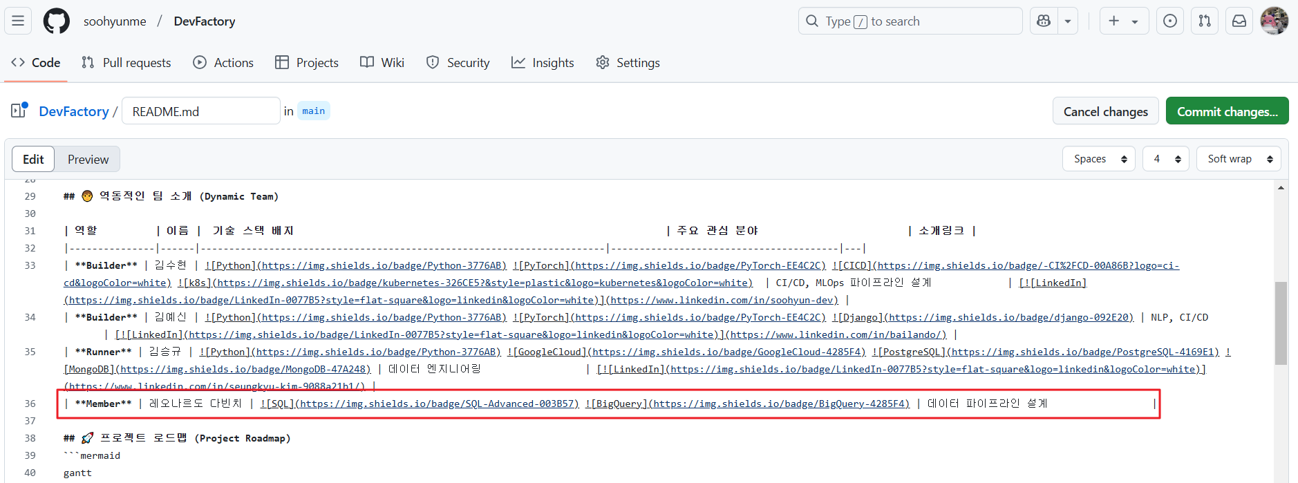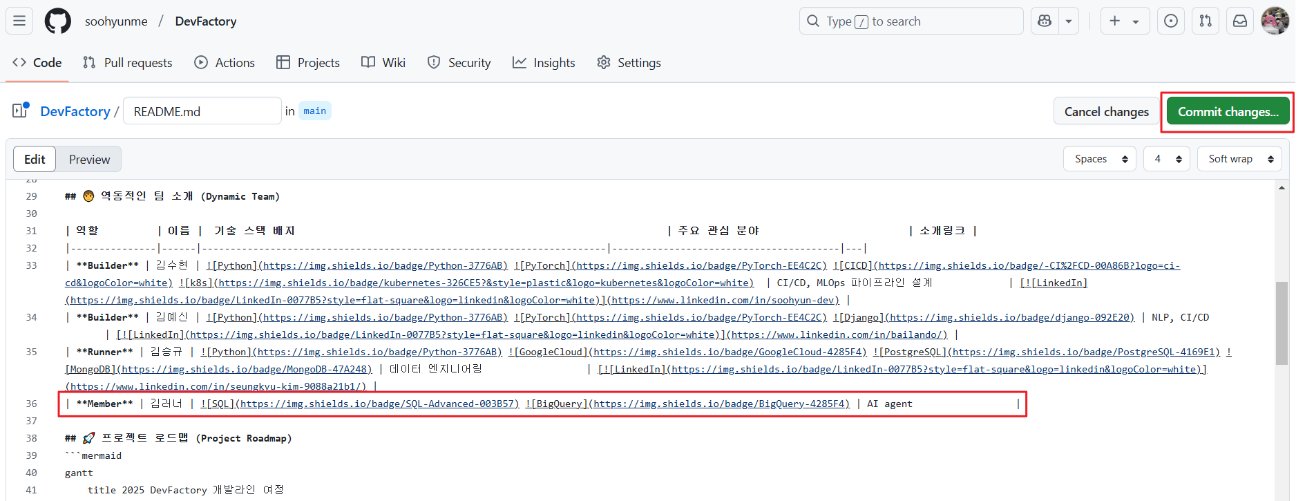포크한 저장소의 최상위 디렉터리에서 README.md 파일을 열고, 프로필에 해당하는 영역을 찾습니다.