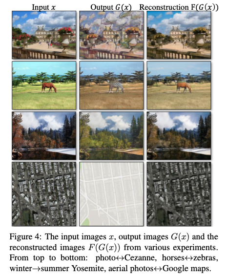 cycle consistency loss 를 통해 유도된 결과는 아래 그림에서 볼 수 있습니다.